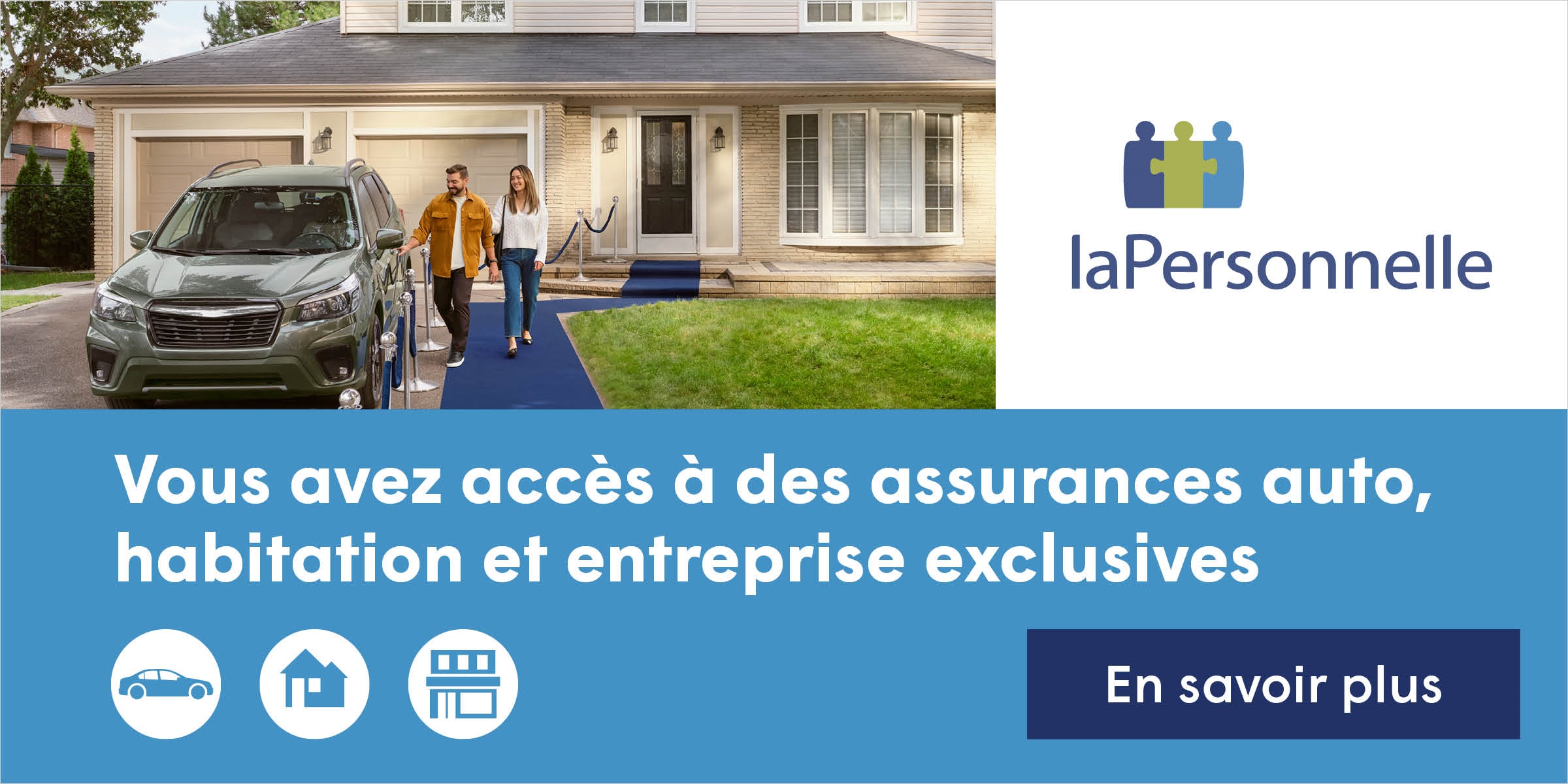 *La Personnelle désigne La Personnelle assurances générales inc. La marque La PersonnelleMD ainsi que les marques de commerce associées sont des marques de commerce de La Personnelle, compagnie d’assurances, employées sous licence. Certaines conditions, exclusions et limitations peuvent s’appliquer. L’assurance auto n’est pas offerte au Manitoba, en Saskatchewan ni en Colombie-Britannique, où il existe des régimes d’assurance gouvernementaux.